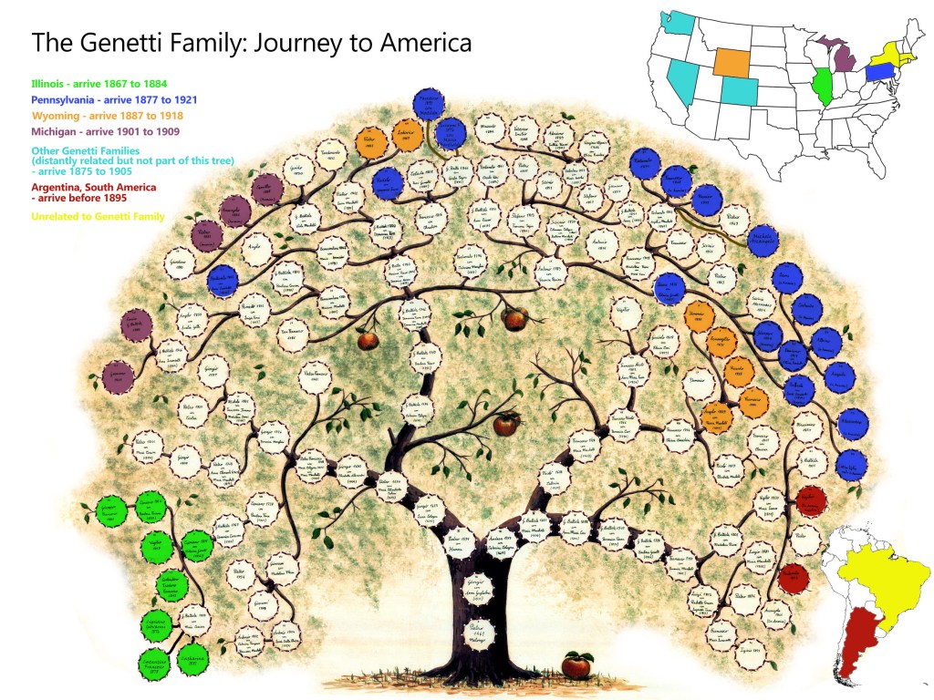 As many living descendants of the Genetti family are second-, third-, and fourth-generation Americans who have moved from the original states where our forebearers settled, you may not know which branch of the family tree you belong to.