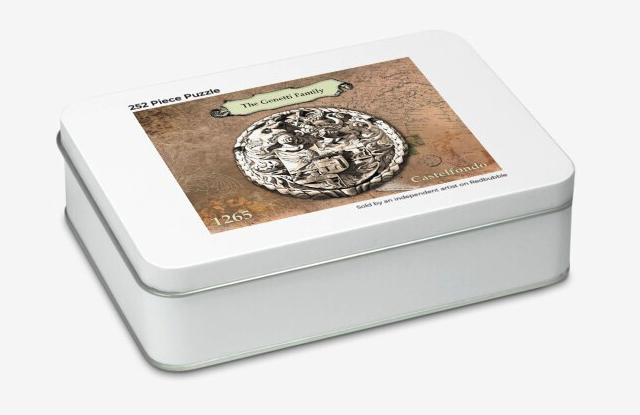 Come by for a visit and browse all of the new products now available in the Genetti Family Shop: coasters, magnets, button pins, jigsaw puzzles, socks, aprons, and a large selection of different T-shirt styles. I was thrilled to see jigsaw puzzles available to our subscribers! What a great gift this holiday when everyone is staying inside. I created a special design specifically to be printed as apuzzle featuring the family coat-of-arms.