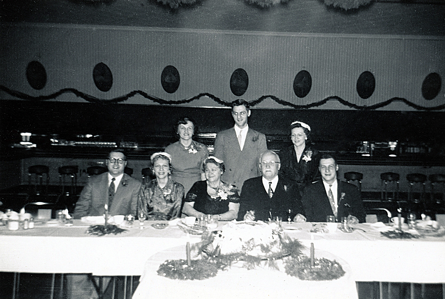 The adult children of Condido and Anna Bott with their families celebrating their parents’ 50th Wedding Anniversary, June 22, 1957.