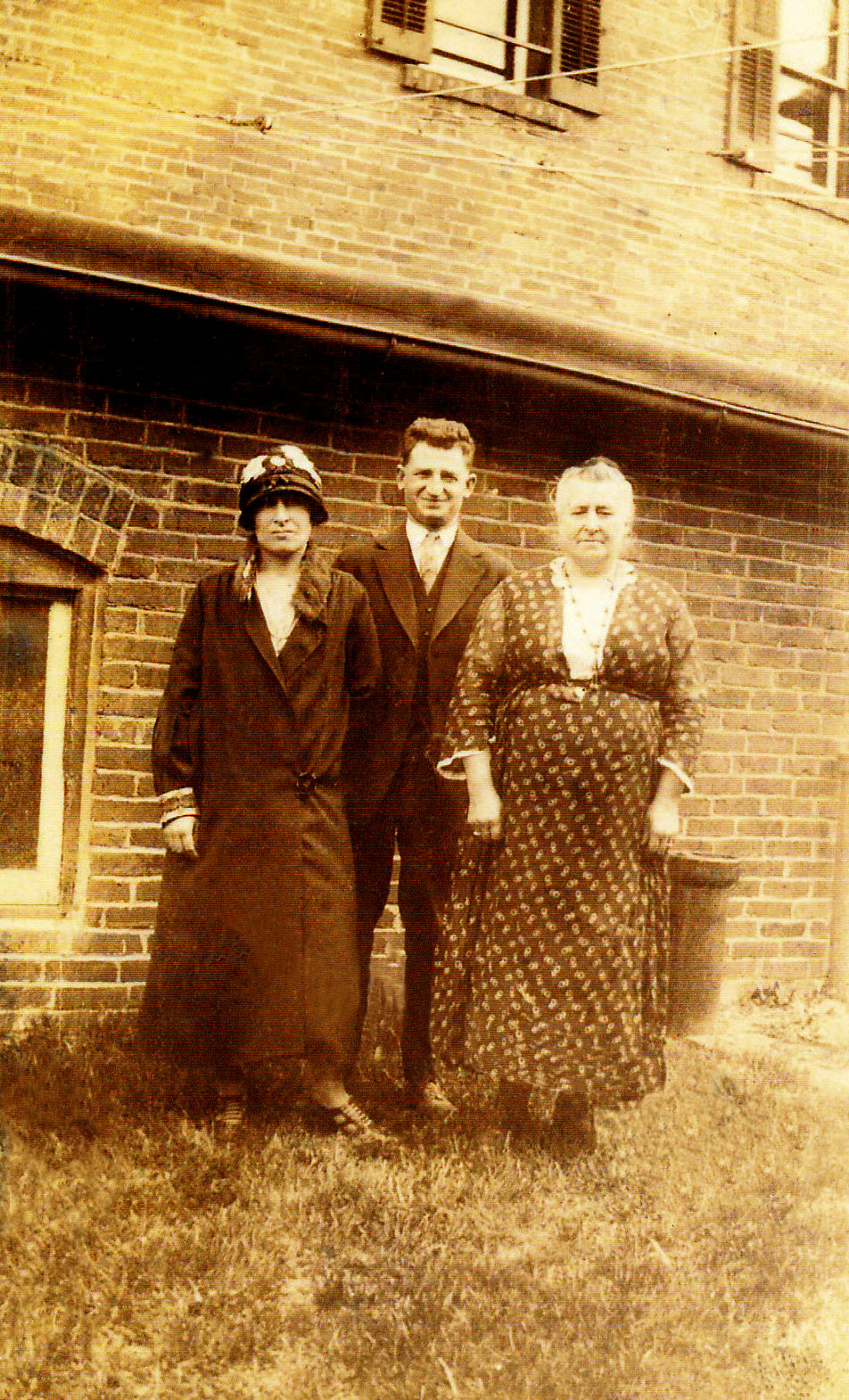 Erma Genetti Branz (1896-1971), her husband Henry Branz (1898-1971), and Erma’s mother Oliva Zambotti Genetti (1861-1938). They are probably standing outside of one of their homes in Hazleton, Pennsylvania. Judging from the style of clothing, the photograph was probably taken in the 1920’s.