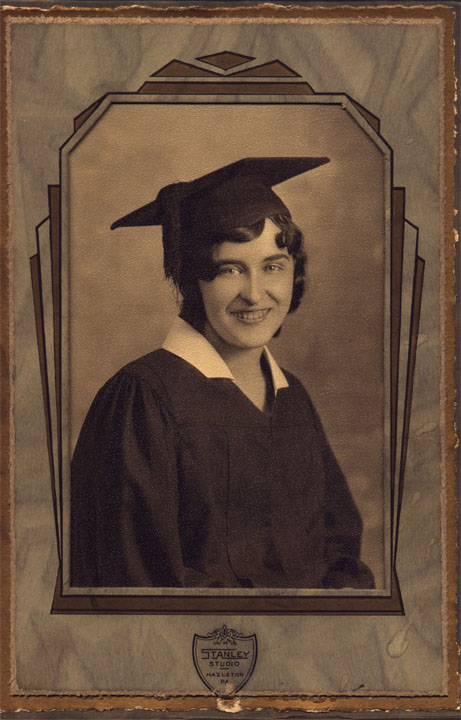 Elizabeth “Betty” Zambotti Reich (1912-1995), daughter of Tillie and Peter Zambotti – high school graduation portrait. She graduated in 1930 from the Public High School of Black Creek Township in Pennsylvania.