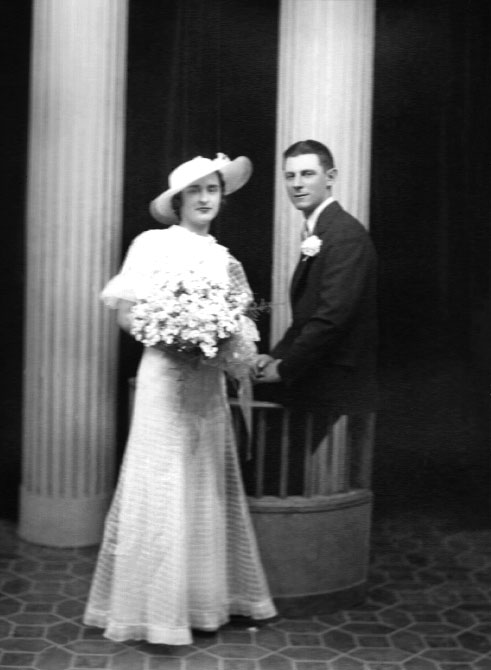 Formal wedding portrait of Betty Zambotti (1912-1995) and Lewis J. Reich (1908-2003), June 3, 1935, photographed by a professional studio in Hazleton, PA.