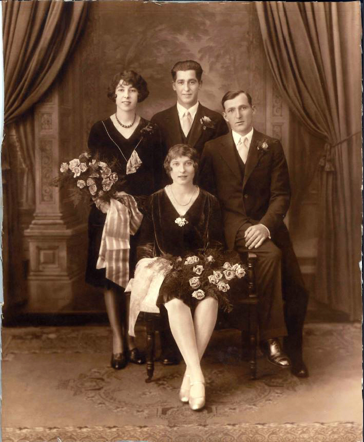 Paul Smith (1894 – 1957) and Elizabeth Genetti (1904 – 1964) on their wedding day, October 6, 1928. In attendance are Elizabeth’s sister, Leona Genetti Hayden (1903 – 1979) and Elizabeth’s brother, Albert Genetti (1906 – 1990). Probably photographed in Hazleton, Pennsylvania.