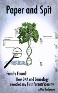 Paper and Spit: Family found: How DNA and Genealogy revealed my first parents’ identity, (please click on title for information or to purchase – paid link), by Don Anderson, published 2017. Available as Paperback: $15.95 and Kindle ebook: $7.99.